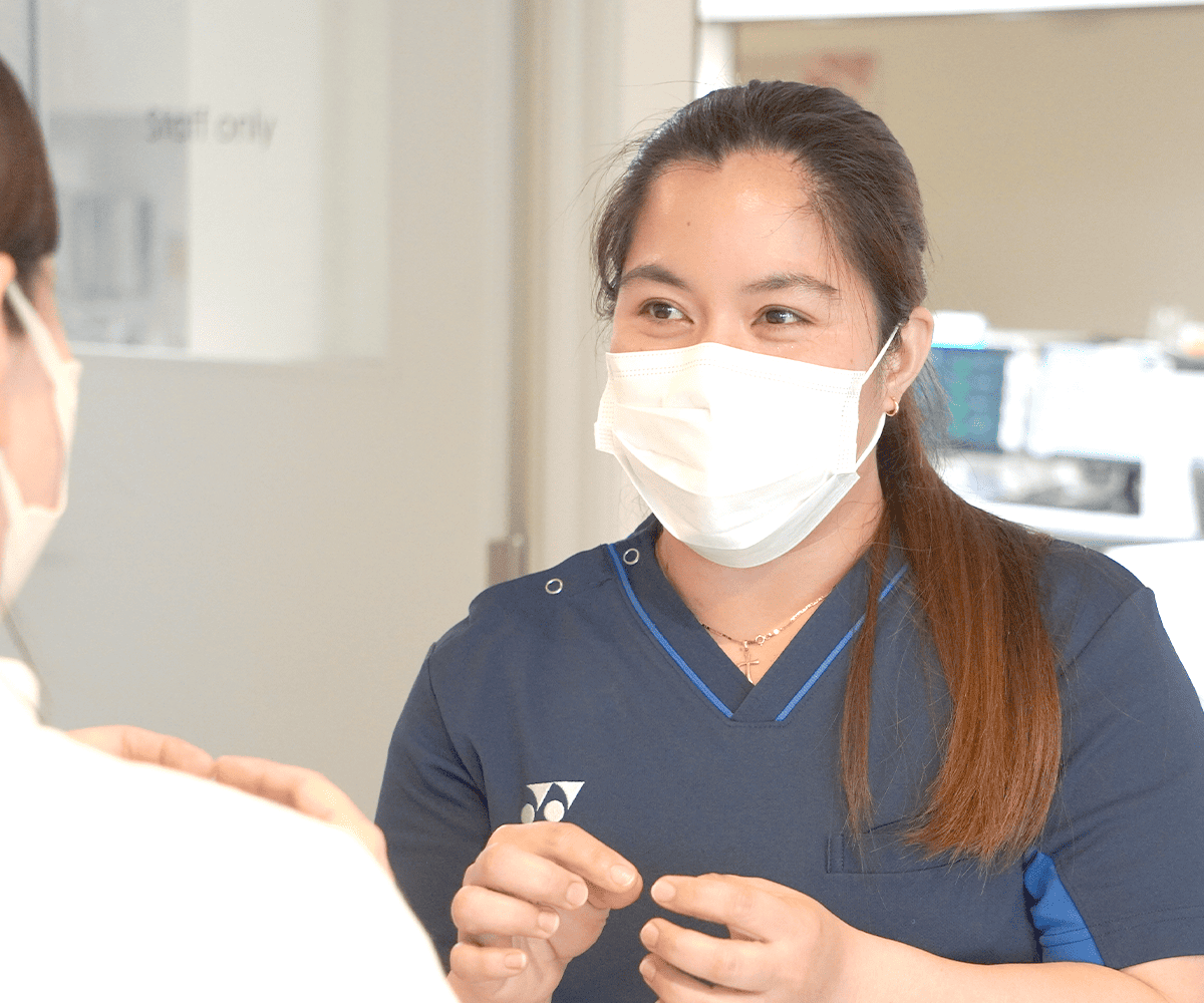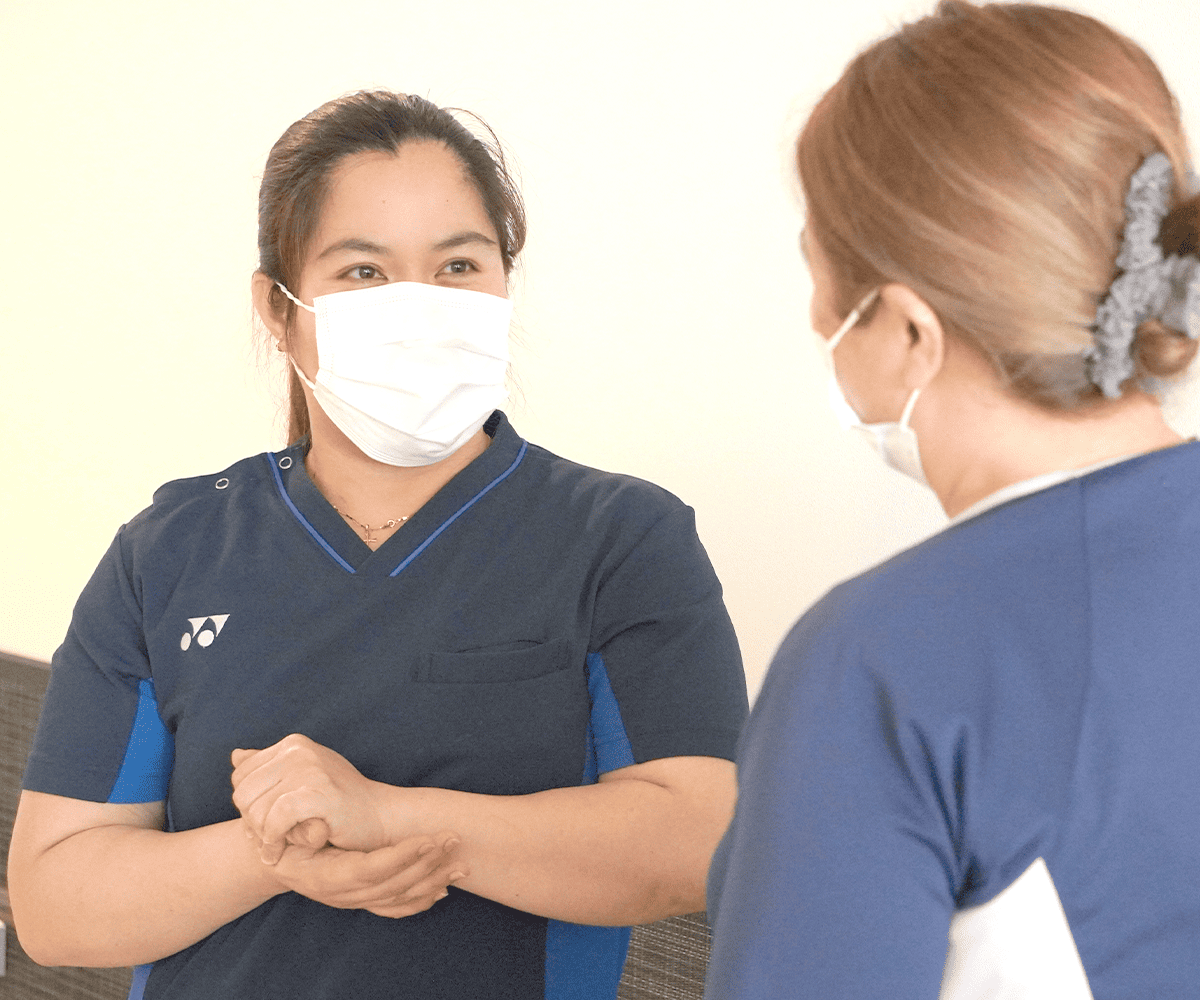 快適で安全な環境の中で、職員や患者さんから大切にされていると感じます。言葉の壁もありますが、周りのスタッフが優しくサポートしてくれるので安心して働くことができています。日本に来て本当によかったと感じています。